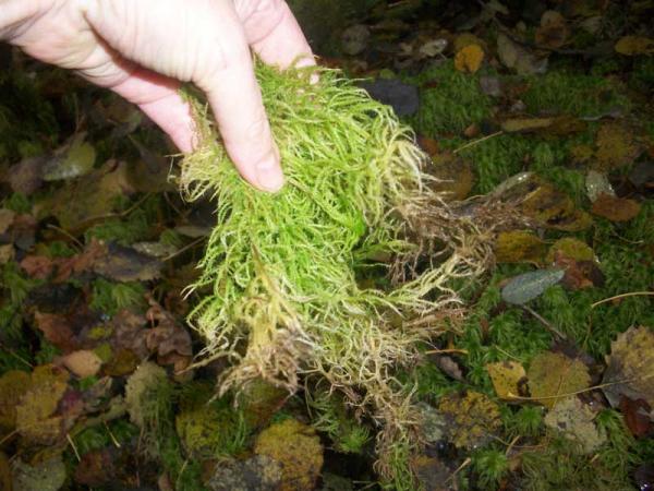 Чтобы мох был не сильно замусоренный, приходится тщательно очищать его от листвы и веточек.