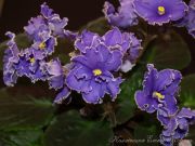 Крупные кружевные белые махровые цветы с тонкой розово-малиновой гофрированной каемочкой по краям лепестков. Светлая аккуратная розетка из слегка волнистых листочков.