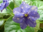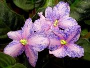 Полумахровые звёзды необычного винно-дымчатого цвета с обильнейшими пятнышками и переливами в светло- розовый фэнтэзи. Цветок кажется муаровым. Цветение обильное.Простые зелёные слегка зубчатые листья