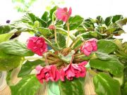Очень крупные (6-7см) густо-махровые тёмно-красные цветы-помпоны на длинных цветоносах образуют свисающие гроздья. Каскадное цветение. Компактная зелёная розетка. Сказочные цветы!