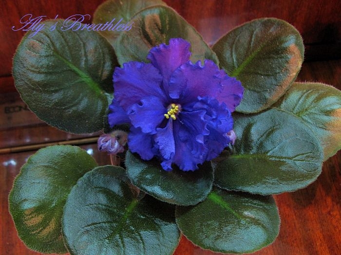 Громадные полумахровые, махровые темно-синие с гофрированным краем звезды возвышаютсянад темно- зеленой стеганой листвой.