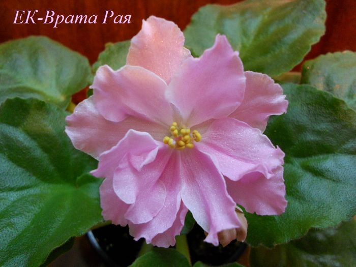 Крупные полумахровые нежно-розовые звёзды с широкими белыми лучами по центру лепестков. Огромная, как облако, шапка! Зелёная компактная розетка. (Описание автора)