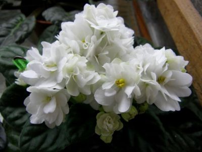 Белоснежная шапка цветов, напоминающих махровые ландыши, над ярко-зеленой розеткой. Малый стандарт.