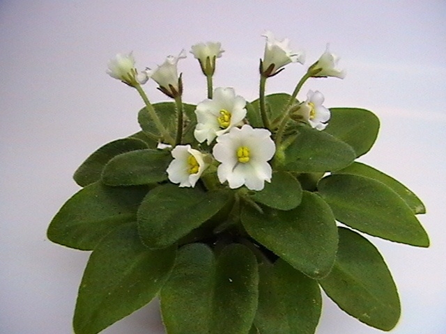 Простой желтый колокольчик с волнистыми лепестками.Средне-зеленая миниатюрная листва. Миниатюрная фиалка